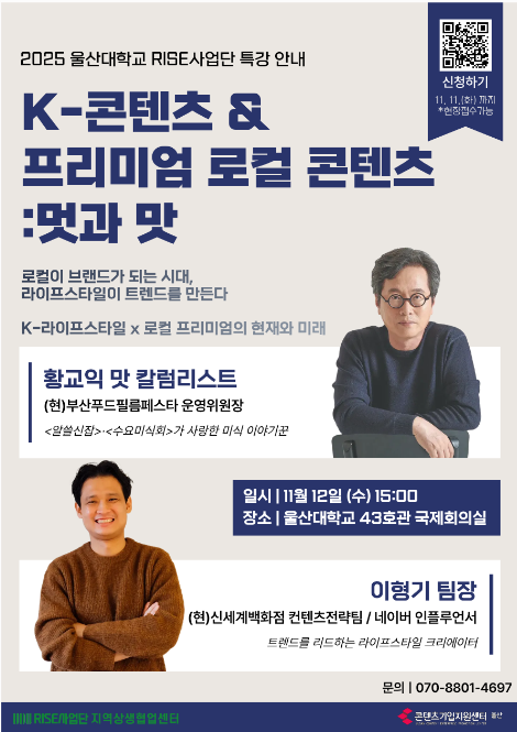 | [RISE사업단 지역상생협업센터] K-콘텐츠 & 프리미엄 로컬 콘텐츠;멋과 맛 | |||||